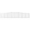 Paniers à gabions arqués 3 pcs 400x30x60/80 cm Fer galvaniséCes paniers de gabion pratiques sont spécialement conçus pour servir de barrières de jardin décoratives et insonorisantes. Matériau durable : il est fabriqué en fer galvanisé résistant à la corrosion pour plus de stabilité et de durabilité, et avec un diamètre de fil de gabion robuste de 3,5 mm, le mur de gabion ornera sûrement votre jardin en toute saison. Construction stable : la cage à gabion voûtée est conçue pour être remplie de roches ou de gravier pour une construction stable. Large application : vous pouvez placer ce mur de soutènement en gabion partout où vous avez besoin pour garder le vent et la pluie à l'extérieur. Vous pouvez également le placer dans votre jardin, cour avant ou sur le patio comme supplément décoratif à votre espace de vie extérieur. Crochets de gabion renforcés : les crochets de gabion renforcés inclus relient étroitement les panneaux métalliques opposés afin que le mur de soutènement de la cage en pierre puisse conserver sa forme même lorsqu'il est rempli de roche ou d'autres matériaux. Utilisation pratique : une fois le montage terminé, il vous suffit de remplir le panier mural gabion avec des pierres pour une utilisation immédiate. Il peut être rempli de matériaux naturels tels que le béton, le grès et la pierre colorée. Bon à savoir :Pour faciliter au maximum le montage, chaque produit est livré avec des instructions. Remarque :Les pierres ne sont pas incluses dans la livraison. Attention ! Les fils métalliques peuvent être pointus et tranchants ! Portez des chaussures de sécurité et des gants de protection lors de l'installation !