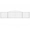 Paniers à gabions arqués 3 pcs 400x30x80/100 cm Fer galvaniséCes paniers de gabion pratiques sont spécialement conçus pour servir de barrières de jardin décoratives et insonorisantes. Matériau durable : il est fabriqué en fer galvanisé résistant à la corrosion pour plus de stabilité et de durabilité, et avec un diamètre de fil de gabion robuste de 3,5 mm, le mur de gabion ornera sûrement votre jardin en toute saison. Construction stable : la cage à gabion voûtée est conçue pour être remplie de roches ou de gravier pour une construction stable. Large application : vous pouvez placer le mur de soutènement en gabion partout où vous avez besoin pour garder le vent et la pluie à l'extérieur. Vous pouvez également le placer dans votre jardin, cour avant ou sur le patio comme supplément décoratif à votre espace de vie extérieur. Crochets de gabion renforcés : les crochets de gabion renforcés inclus relient étroitement les panneaux métalliques opposés afin que le mur de soutènement de la cage en pierre puisse conserver sa forme même lorsqu'il est rempli de roche ou d'autres matériaux. Utilisation pratique : une fois le montage terminé, il vous suffit de remplir le panier mural gabion avec des pierres pour une utilisation immédiate. Il peut être rempli de matériaux naturels tels que le béton, le grès et la pierre colorée. Bon à savoir :Pour faciliter au maximum le montage, chaque produit est livré avec des instructions. Les pierres ne sont pas incluses dans la livraison. Attention ! Les fils métalliques peuvent être pointus et tranchants ! Portez des chaussures de sécurité et des gants de protection lors de l'installation !