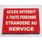 Panneau "ACCES INTERDIT A TOUTE PERSONNE ETRANGERE AU SERVICE" format 300 x 400 mm fond ROUGE