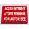 Panneau "ACCES INTERDIT A TOUTE PERSONNE NON AUTORISEE" format 200 x 300 mm fond ROUGE