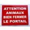 Panneau "ATTENTION ANIMAUX BIEN FERMER LE PORTAIL" format 200 x 300 mm fond ROUGE