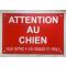 Panneau "ATTENTION AU CHIEN VOUS ENTREZ A VOS RISQUES ET PERILS" format 200 x 300 mm fond ROUGE