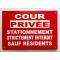 Panneau "COUR PRIVÉE STATIONNEMENT STRICTEMENT INTERDIT SAUF RÉSIDENTS" format 300 x 400 mm