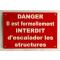 Panneau "DANGER Il est formellement INTERDIT d'escalader les structures" format 200 x 300 mm