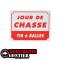 Le panneau "JOURS DE CHASSE" en aluminium 30x25 cm est conçu pour informer des jours de chasse autorisés sur un territoire donné.