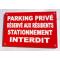 Panneau "PARKING PRIVÉ RÉSERVÉ AUX RÉSIDENTS STATIONNEMENT INTERDIT" format 300 x 400 mm fond ROUGE