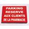 Panneau "PARKING RESERVE AUX CLIENTS DE LA PHARMACIE" format 200 x 300 mm fond ROUGE