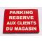 Panneau "PARKING RESERVE AUX CLIENTS DU MAGASIN" format 200 x 300 mm fond ROUGE