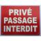 Panneau "PRIVÉ PASSAGE INTERDIT" format 200 x 300 mm fond ROUGE