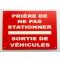 Panneau "PRIÈRE DE NE PAS STATIONNER SORTIE DE VÉHICULES" format 300 x 400 mm fond ROUGE
