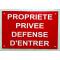 Panneau "PROPRIETE PRIVEE DEFENSE D'ENTRER" format 200 x 300 mm fond ROUGE