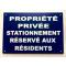 Panneau "PROPRIÉTÉ PRIVÉE STATIONNEMENT RÉSERVÉ AUX RÉSIDENTS" format 200 x 300 mm fond bleu