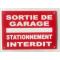 Panneau "SORTIE DE GARAGE STATIONNEMENT INTERDIT" format 300 x 400 mm fond ROUGE