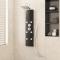 Panneau de douche Verre 25x47,5x130 cm NoirCe système de panneaux de douche multifonctionnel a un design élégant et fera un excellent accessoire à votre salle de bain. La colonne de douche est en acier inoxydable et en verre trempé. Le verre trempé est produit avec un traitement thermique ou chimique contrôlé, ce qui le rend plus durable et plus sûr que le verre normal. Il a trois fonctions de mode de douche : douche à effet pluie, jet de massage et douchette, qui peuvent être facilement sélectionnées. Les buses en silicone résistent à l'accumulation de calcaire. Plongez dans une expérience de douche vraiment relaxante et appréciez le style moderne de ce système de panneaux de douche magnifiquement conçu !