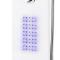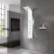 Panneau de douche aluminium 20x44x130 cm blancCe système de panneaux de douche multifonctionnel a un design élégant et fera un excellent accessoire à votre salle de bain. La tour de douche est en aluminium durable et résistant à la rouille. Il est équipé de 30 LED résistants à l'eau dans la pomme de douche à l'effet de pluie et de jets de massage corporel pour fournir un éclairage d'ambiance. Il existe quatre modes de douche : pluie, cascade, jet de massage et douche à main, qui peuvent être facilement sélectionnés. Les buses en silicone sont résistantes à la formation de calcaire. Plongez dans une expérience de douche vraiment relaxante et appréciez le style moderne de ce système de panneaux de douche magnifiquement conçu ! L'assemblage est facile. La livraison comprend tous les accessoires de montage. Remarque : les chauffe-eau à gaz et les chauffe-eau solaires ne conviennent pas à l'utilisation d'un robinet thermostatique. L'eau du robinet qui contient des sédiments pulvérulents, des grumeaux solides ou des objets mous peut réduire la sensibilité du noyau de la valve thermostatique et raccourcir la durée de vie du robinet thermostatique. Cet appareil n'est pas destiné à être utilisé par des personnes (dont les enfants) dont les capacités physiques, sensorielles ou mentales sont réduites, ou qui manquent d'expérience et de connaissances, à moins qu'elles n'aient pu bénéficier d'une surveillance ou d'instructions concernant l'utilisation de l'appareil de la part d'une personne responsable de leur sécurité. Ce produit n'est pas un jouet. Ne laissez pas les enfants jouer avec l'appareil.