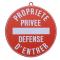 Ce panneau rond de 28 cm x 20 cm porte la mention « Propriété Privée - Défense d'entrer » inscrite en blanc sur fond rouge. En plastique robuste, il est spécialement prévu pour résister aux intempéries. Pré-troué, il se fixe facilement grâce à des clous ou des vis. De couleur vive, il est visible de loin et informera les passants qu'ils ne doivent pas pénétrer dans la propriété.