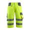 Pantacourt haute visibilité avec bandes réfléchissantes et triples coutures pour une meilleure durabilité du vêtement.