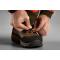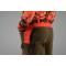 Le pantalon Wildboar Pro est réalisé en AirTechTM, une toile solide et résistance, coupe-vent, déperlante et résistance aux salissures. Sur tout l'avant des jambes et jusque sur le bas des cuisses à l'arrière, il est muni d'empiècements de protection en polyéthylène au tissage particulier. Grâce à ces empiècements, ce pantalon a été certifié et reconnu comme vêtement de protection pour la chasse au sanglier par deux organismes de test allemands du domaine des technologies agricoles et forestières, KWF (Das Kuratorium für Waldarbeit und Forsttechnik) et DPLF (Deutsche Prüf- und Zertifizierungsstelle für Land-und Forsttechnik). Il est en outre doté d'une membrane solide GORE-TEX® imperméable et coupe-vent, capable de résister à une pression d'eau élevée tout en demeurant très respirante. En outre, ce pantalon a bénéficié du traitement Durable Water Repellent (DWR), qui le rend déperlant et résistant aux salissures. En haut des cuisses, il est doté de zips de ventilation latéraux munis d'un empiècement en filet offrant une bonne aération lors d'une activité intense. Il possède des poches avant en biais ouvertes, ainsi que deux grandes poches cargo. La poche cargo droite est munie d'un porte-cartouche pouvant accueillir quatre cartouches de carabine. La poche gauche est équipée de cloisons en Velcro pour transporter séparément son couteau et son téléphone, par exemple. Dans le bas des jambes se trouve un crochet permettant de fixer le pantalon aux lacets de ses chaussures. Le pantalon Wildboar Pro est équipé de pattes de serrage dans le bas des jambes et à l'arrière des genoux. Ces dernières permettent de donner plus d'ampleur au niveau des genoux, ce qui est idéal lors des chasses bénéficiant d'une grande liberté de mouvement. Du côté gauche de la ceinture se trouve un anneau en D où accrocher différents outils. Le pantalon Wildboar Pro bénéficie d'une garantie de 5 ans s'appliquant à tous les vices de fabrication et de matériau.