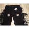 Il y a des franges sur les côtés et des rosettes perlées sur le devant des jambes :-)