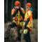 Grande poche cargo jaune de sécurité à gauche avec fermeture à bouton-pression et oeillets