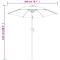 Le mât en aluminium robuste avec revêtement en poudre, ainsi que les 6 nervures métalliques robustes, ajoutent à sa stabilité, ce qui rend le parasol très durable pendant des années de service.