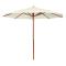 Parasol 300x258 cm Blanc sableProfitez de l'été sur votre terrasse, patio ou dans votre jardin avec cet élégant parasol de jardin ! Matériau durable : le cadre est en bois dur et comporte une corde en bois pour fixer le parasol de manière sûre. La couverture est en polyester imputrescible. Poignée pratique : en utilisant la poignée, vous pourrez étendre l'écran très facilement. Larges applications : cet élégant parasol sera idéal pour créer de l'ombre sur votre patio, terrasse ou dans votre jardin.