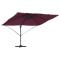 Parasol Bordeaux 351 x 250 x 260 cm Polyester et AluminiumLe parasol Cantilever Roma est parfait pour n'importe quel jardin ou terrasse. Avec son design moderne et simple, il embellit vos espaces extérieurs avec ses lignes épurées. Ce parasol élégant apporte une touche de sophistication à vos journées d'été. Que vous vous détendiez dans le jardin ou que vous receviez des amis sur votre terrasse, il vous offre une ombre confortable loin des rayons du soleil. Tissu polyester protégé contre les UV: Fait en polyester, ce parasol garantit une très bonne protection contre les UV, évitant que les couleurs ne se décolorent sous le soleil. Il assure des teintes vives qui dureront dans le temps, vous permettant de profiter d'ombre sans souci. Mécanisme rotatif 360°: Avec sa base pivotante, ce parasol vous offre une ombre dans toutes les directions. Faites-le tourner facilement à la position que vous voulez pour une protection solaire optimale toute la journée. Idéal pour les extérieurs où la lumière bouge. Ajustement manuel & manivelle: Son système de manivelle vous permet d'ouvrir et de fermer le parasol sans effort, avec un mécanisme d'inclinaison pour s'adapter au soleil. Cela rend l'ajustement de l'ombre super simple et confortable selon vos besoins. Système de verrouillage de sécurité: Il a un mécanisme de verrouillage sûr qui maintient le parasol bien en place, évitant toute fermeture inattendue. Cette sécurité vous rassure, surtout par vent, pour que votre parasol reste stable. Design contemporain: Avec son style moderne, le parasol Cantilever Roma s'accorde avec différents décors extérieurs. Son look élégant et minimaliste apporte un chic à votre jardin ou terrasse, rendant votre expérience extérieure à la fois stylée et pratique.