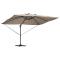 Parasol Cantilever Roma avec LEDs Taupe 352 x 251 x 265 cm en AluminiumCe parasol Roma déporté allie style et fonctionnalité, parfait pour apporter de l'ombre dans vos espaces extérieurs comme les terrasses, jardins ou balcons. Son joli taupe et ses lumières LED solaires améliorent votre expérience à l'extérieur, que ce soit pour des rassemblements ou pour se détendre en plein air. Fonctionnalités Réglables : Le parasol pivote à 360 degrés et s'incline pour un ombrage flexible, pour votre confort et une bonne protection solaire toute la journée. Construction Robuste : Fait en aluminium et acier de qualité, ce parasol est prêt à affronter les intempéries grâce à son revêtement, pour que vous profitiez de vos loisirs en extérieur. Illumination LED : Les lumières LED solaires offrent une belle lumière le soir, pour que vous profitiez de vos espaces extérieurs même après le coucher du soleil. Protégé contre le Vent : Avec des cordes de sécurité et une base croisée solide, il reste stable même par vent fort, évitant les risques de renversement. Facilité d'Utilisation : La manivelle rend l'ouverture et la fermeture super simples, pour des ajustements rapides quand vous en avez besoin. Profitez de la commodité sans perdre en style. Ce produit ne doit pas être éliminé avec les autres déchets ménagers dans l'Union européenne.