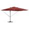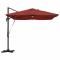 Parasol Cantilever Roma avec LEDs, terracotta, 352x251x265 cm, en aluminium.Ce grand parasol déporté, c'est la solution facile pour avoir de l'ombre dehors, génial pour les patios, jardins ou balcons. Son look moderne et épuré reste stylé tout en te protégeant du soleil. Ce parasol est équipé de fonctionnalités réglables comme la hauteur et une inclinaison à 360 degrés, donc tu peux obtenir exactement l'ombre qu'il te faut selon la position du soleil. Sa conception résiste à différentes conditions météo, te garantissant de profiter de tes fêtes d'été sans souci. Fait de matériaux résistants aux UV et déperlant, il te tient à l'abri du soleil tout en séchant rapidement après la pluie. Le design s'adapte bien partout, que ce soit dans ton jardin ou un café, c'est un super ajout à tout espace extérieur. Avec son grand diamètre, il couvre plusieurs arrangements de sièges, idéal pour des après-midis relax ou des buffets. Sa finition mate épurée apporte une touche classy à ton patio ou jardin, augmentant son attrait général. Gardez les enfants éloignés de la zone d'assemblage pendant l'assemblage. Assurez-vous que ce produit est entièrement assemblé comme illustré avant utilisation. Assurez-vous que le produit est toujours placé sur un sol plat. Aucune responsabilité ne sera acceptée pour les dommages ou blessures causés par une utilisation incorrecte de ce produit. Éloignez vos mains du mécanisme de pliage et des pièces mobiles afin d'éviter toute blessure. N'utilisez et n'ouvrez jamais ce parasol sans avoir installé une base appropriée. N'utilisez pas ce parasol par vent fort ou en cas de pluie. Le non-respect de cette consigne peut entraîner des blessures et/ou des dommages. Fermez toujours le parasol et mettez la housse si le vent dépasse une « brise modérée », s'il neige ou s'il pleut. Le produit contient de petites pièces qui peuvent présenter un risque pour les jeunes enfants. Gardez les petites pièces hors de portée des enfants. Ce produit n'est pas un jouet ! Veillez à ce que les enfants n'utilisent pas le parasol, la toile ou la base pour jouer ou grimper. N'utilisez pas de feu ouvert (par exemple, barbecue ou grill) sous ou à proximité immédiate de ce produit. Fixez le produit à l'aide de cordes et de poids. Si la vitesse du vent dépasse 6 m/sec ou en cas de forte pluie, retirez soigneusement le produit, pliez-le, fixez-le et rangez-le dans un endroit sûr. Préparation à l'utilisation. Avant utilisation, veuillez vérifier que votre gazebo, tente, parasol ou pavillon n'est pas endommagé (éléments métalliques tordus, tissu déchiré). En cas de dommages, n'utilisez pas le produit. Le non-respect de ces consignes peut entraîner des dommages. Garantie : seuls les produits utilisés conformément aux instructions du fabricant sont couverts par la garantie et peuvent faire l'objet d'une réclamation.
