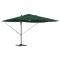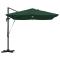 Parasol Cantilever Roma de avec LEDs, vert, dimensions 352x251x265 cm, en aluminiumCe grand parasol déporté vert, c'est le top pour rester au frais en dehors tout en étant stylé, parfait pour ton jardin, ta terrasse ou ton salon extérieur. Son look moderne et chic allie facilement élégance et protection contre le soleil. Ce parasol propose des réglages pour la hauteur et l'inclinaison, permettant d'ajuster l'ombre selon la position du soleil. Sa construction robuste assure une bonne résistance aux diverses conditions extérieures, te laissant tranquille quand tu reçois des amis l'été. Fait de matériaux résistants aux UV et déperlant, il te protège des rayons nuisibles tout en séchant vite après une averse. Cela veut dire que tu peux garder ton espace extérieur accueillant sans attendre qu'il sèche. Son design flexible en fait un excellent choix pour n'importe quel espace extérieur. Parfait pour un usage maison ou dans des lieux commerciaux comme des cafés et des restaurants, il améliore l'expérience des clients à l'extérieur. Avec sa grande forme rectangulaire, ce parasol offre une couverture suffisante pour tous les arrangements de sièges. Que tu cuisines à l'extérieur ou que tu te détendes, sa taille garantit confort et style. La finition mate propre complète son look moderne, ajoutant une ambiance élégante à tout espace extérieur. Sa texture lisse apporte une touche attrayante à l'apparence générale de ton jardin ou de ta terrasse. Gardez les enfants éloignés de la zone d'assemblage pendant l'assemblage. Assurez-vous que ce produit est entièrement assemblé comme illustré avant utilisation. Assurez-vous que le produit est toujours placé sur un sol plat. Aucune responsabilité ne sera acceptée pour les dommages ou blessures causés par une utilisation incorrecte de ce produit. Éloignez vos mains du mécanisme de pliage et des pièces mobiles afin d'éviter toute blessure. N'utilisez et n'ouvrez jamais ce parasol sans avoir installé une base appropriée. N'utilisez pas ce parasol par vent fort ou en cas de pluie. Le non-respect de cette consigne peut entraîner des blessures et/ou des dommages. Fermez toujours le parasol et mettez la housse si le vent dépasse une « brise modérée », s'il neige ou s'il pleut. Le produit contient de petites pièces qui peuvent présenter un risque pour les jeunes enfants. Gardez les petites pièces hors de portée des enfants. Ce produit n'est pas un jouet ! Veillez à ce que les enfants n'utilisent pas le parasol, la toile ou la base pour jouer ou grimper. N'utilisez pas de feu ouvert (par exemple, barbecue ou grill) sous ou à proximité immédiate de ce produit. Fixez le produit à l'aide de cordes et de poids. Si la vitesse du vent dépasse 6 m/sec ou en cas de forte pluie, retirez soigneusement le produit, pliez-le, fixez-le et rangez-le dans un endroit sûr. Préparation à l'utilisation. Avant utilisation, veuillez vérifier que votre gazebo, tente, parasol ou pavillon n'est pas endommagé (éléments métalliques tordus, tissu déchiré). En cas de dommages, n'utilisez pas le produit. Le non-respect de ces consignes peut entraîner des dommages. Garantie : seuls les produits utilisés conformément aux instructions du fabricant sont couverts par la garantie et peuvent faire l'objet d'une réclamation.