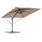 Parasol Roma Taupe 286 x 284 x 265 cm Aluminium et polyesterLe parasol cantilever Roma se démarque des autres solutions d'ombrage, avec son design moderne parfait pour les jardins et terrasses au soleil. Ses dimensions de 286 x 284 x 265 cm offrent une belle couverture, et le mélange d'aluminium et de polyester assure solidité et élégance. Que ce soit pour un repas entre amis ou pour un après-midi relaxant, ce parasol rehausse n'importe quel extérieur avec son ambiance contemporaine et son design pratique. Aluminium et polyester : Fabriqué avec un mélange costaud d'aluminium et de polyester, ce parasol est super solide et résiste bien aux intempéries. L'aluminium lui donne une structure robuste tandis que le canopy en polyester vous protège bien du soleil, parfait pour l'extérieur. Composants sophistiqués : Avec un axe inclinable et rotatif, ajuster ce parasol à votre convenance devient un jeu d'enfant. La rotation à 360° permet de suivre le soleil facilement et d'obtenir l'ombre idéale tout au long de la journée. Ces caractéristiques pratiques rendent son utilisation vraiment agréable. Éléments de design fonctionnels : Son design combine style et pratique. Avec une manivelle, son ouverture et fermeture sont super simples. Le système de levage à verrouillage automatique assure que tout reste en place en toute sécurité. Idéal pour toutes sortes d'environnements extérieurs, que ce soit pour se détendre ou pour des événements. Utilisation polyvalente : Ce parasol est parfait pour les jardins ou terrasses, alliant élégance à praticité. Son style chic est idéal pour des soirées entre amis ou des moments relax. Il se fond bien dans n'importe quel cadre pour s'adapter à toutes vos envies. Entretien facile : Pour garder ce parasol en bon état, utilisez une housse lorsqu'il n'est pas en service. C'est une façon simple de le protéger et de prolonger sa vie, tout en gardant son attrait au fil des saisons.