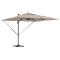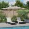 Parasol Roma Taupe 286 x 284 x 270 cm Aluminium et polyesterLe parasol Roma, avec son design moderne, magnifie tes espaces extérieurs comme les jardins et les terrasses. Sa grande taille offre l'ombre qu'il faut pour se détendre l'été en famille ou entre amis. Il est conçu pour être simple et fonctionnel, créant une ambiance accueillante pour les amateurs de plein air. Matériaux de qualité : Ce parasol est fait de tissu en polyester durable, parfait pour résister aux aléas du temps. Son cadre en aluminium est léger mais très stable, ce qui le rend facile à déplacer sans sacrifier la solidité, garantissant un bon rendement sur le long terme. Lumières LED intégrées : Il a des bandes LED sur le parasol, offrant non seulement de l'ombre, mais aussi une belle lumière pour les soirées. Les lumières fonctionnent à l'énergie solaire, donc pas besoin d'électricité, ce qui améliore la polyvalence et le côté écolo du parasol. Fonctionnalité ajustable : Avec un auvent inclinable et rotatif, tu peux le placer exactement où il faut pour avoir le maximum de protection contre le soleil. Sa rotation à 360° et son système de levage auto-bloquant t'offrent flexibilité et stabilité, peu importe l'heure ou l'angle du soleil. Confort pour l'utilisateur : Grâce à une manivelle super facile à utiliser, ouvrir ou fermer l'auvent se fait sans effort, ce qui permet à tout le monde, peu importe leur âge, de l'utiliser sans problème. Que ce soit pour une journée ensoleillée ou pour le sécuriser contre le vent, c'est un jeu d'enfant. Entretien et rangement faciles : Pour garder ton parasol en bon état et prolonger sa durée de vie, utilise une housse de protection quand il ne sert pas. C'est simple et cela protège des intempéries, maintenant son look et sa solidité saison après saison. Gardez les enfants éloignés de la zone d'assemblage pendant l'assemblage. Assurez-vous que ce produit est entièrement assemblé comme illustré avant utilisation. Assurez-vous que le produit est toujours placé sur un sol plat. Aucune responsabilité ne sera acceptée pour les dommages ou blessures causés par une utilisation incorrecte de ce produit. Éloignez vos mains du mécanisme de pliage et des pièces mobiles afin d'éviter toute blessure. N'utilisez et n'ouvrez jamais ce parasol sans avoir installé une base appropriée. N'utilisez pas ce parasol par vent fort ou en cas de pluie. Le non-respect de cette consigne peut entraîner des blessures et/ou des dommages. Fermez toujours le parasol et mettez la housse si le vent dépasse une « brise modérée », s'il neige ou s'il pleut. Le produit contient de petites pièces qui peuvent présenter un risque pour les jeunes enfants. Gardez les petites pièces hors de portée des enfants. Ce produit n'est pas un jouet ! Veillez à ce que les enfants n'utilisent pas le parasol, la toile ou la base pour jouer ou grimper. N'utilisez pas de feu ouvert (par exemple, barbecue ou grill) sous ou à proximité immédiate de ce produit. Fixez le produit à l'aide de cordes et de poids. Si la vitesse du vent dépasse 6 m/sec ou en cas de forte pluie, retirez soigneusement le produit, pliez-le, fixez-le et rangez-le dans un endroit sûr. Préparation à l'utilisation. Avant utilisation, veuillez vérifier que votre gazebo, tente, parasol ou pavillon n'est pas endommagé (éléments métalliques tordus, tissu déchiré). En cas de dommages, n'utilisez pas le produit. Le non-respect de ces consignes peut entraîner des dommages. Garantie : seuls les produits utilisés conformément aux instructions du fabricant sont couverts par la garantie et peuvent faire l'objet d'une réclamation.