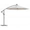 Parasol avec éclairage LED 300cm Poteau en métal SableCet élégant parasol de jardin suspendu avec éclairage LED est un choix parfait pour créer de l'ombre et vous protéger des rayons UV nocifs du soleil. Lorsque le soleil se couche, les LED atmosphériques à énergie solaire éclairent automatiquement votre espace de vie extérieur. La grande toile mesure 300 cm de diamètre et elle est fabriquée en polyester résistant aux UV et à la décoloration. Le solide poteau métallique, les nervures (8) et la base croisée rendent le parasol très stable et durable. L'auvent pend librement du poteau, de sorte que l'espace sous le parapluie reste sans obstruction. Le parasol de jardin peut être facilement ouvert et fermé grâce au mécanisme à manivelle. Les 24 LED intégrées, alimentées par 1 panneau solaire, créeront une ambiance agréable et romantique la nuit. L'assemblage est facile. Il est important que tout produit assemblé à l'aide d'une vis, quelle qu'elle soit, soit resserré deux semaines après l'assemblage et une fois tous les trois mois, afin d'assurer la stabilité du produit pendant toute sa durée de vie. Ne serrez pas complètement chaque vis avant que toutes les vis soient correctement fixées. Tenir les enfants à l'écart de la zone d'assemblage pendant le montage. Manipulez les pièces lourdes avec précaution. Assurez-vous que ce produit est entièrement assemblé comme illustré avant de l'utiliser. Ce produit ne doit être utilisé que sur un sol ferme et plat. Veillez à ce que le produit soit toujours placé sur un sol plat. Aucune responsabilité ne sera acceptée en cas de dommages ou de blessures causés par une utilisation incorrecte de ce produit. Tenir les mains à l'écart du mécanisme de pliage et des pièces mobiles afin d'éviter tout risque de blessure. N'utilisez ni n'ouvrez jamais ce parasol sans qu'une base appropriée ne soit en place. N'utilisez pas ce parasol pendant les périodes de vent fort et de pluie. Le non-respect de cette consigne peut entraîner des blessures et/ou des dommages. Fermez toujours le parasol et mettez la housse si le vent dépasse une « brise modérée », s'il y a des chutes de neige ou s'il pleut. Le produit contient de petites pièces qui peuvent présenter un risque pour les jeunes enfants. Gardez les petites pièces hors de portée des enfants. Ce produit n'est pas un jouet ! Veillez à ce que les enfants n'utilisent pas le parasol, l'auvent ou la base pour jouer ou grimper. pour jouer ou grimper. N'utilisez pas de feu ouvert (par exemple, barbecue ou grill) sous ou à côté de ce produit. Si la vitesse du vent dépasse 6 m/s ou en cas de fortes pluies, retirez soigneusement le produit, pliez-le, sécurisez-le et mettez-le dans un endroit sûr. Si le tissu devient accidentellement mouillé, séchez-le immédiatement pour éviter un vieillissement prématuré du produit. Vérifiez avant utilisation que votre gazebo, tente, parasol ou pavillon n'est pas endommagé (éléments métalliques pliés, tissu déchiré). En cas de dommages, n'utilisez pas le produit. Le non-respect de ces consignes peut entraîner des dommages.