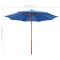 Parasol avec mât en bois 300x258 cm BleuCet élégant parasol est un choix parfait pour créer de l'ombre et vous protéger des rayons UV nocifs du soleil tout en vous relaxant en famille sur le patio, la terrasse ou dans le jardin. Il fera également un supplément attrayant à votre espace de vie en plein air. Ce parasol d'extérieur est composé d'un tissu en polyester résistant aux UV et à la décoloration, qui vous offrira la meilleure protection contre le soleil et les rayons UV. De plus, ses mâts en bois sont très fermes, améliorant ainsi encore sa stabilité et sa durabilité. Le pare-soleil peut être facilement ouvert et fermé grâce au mécanisme à manivelle. En utilisant la poignée, vous pourrez facilement étendre l'écran. Le parasol est facile à assembler.