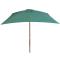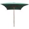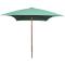Parasol avec poteau en bois 200 x 300 cm VertCe parasol élégant en bois, qui peut être monté sur votre support existant ou dans le trou central d'une table, est le choix idéal pour créer un peu d'ombre et vous protéger contre les rayons UV nocifs du soleil tout en lisant ou en buvant du café avec votre famille ou les amis sur votre patio ou dans le jardin. Le parasol peut être facilement ouvert et fermé. Cette housse de parasol est faite de polyester résistant aux UV et grand teint. Le poteau robuste en bois dur d'une belle couleur de teck, avec les 6 nervures robustes, ajoutent à sa stabilité, rendant le parasol très durable pendant des années d'utilisation.
