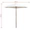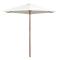 Parasol avec poteau en bois 270 x 270 cm Blanc crèmeCe parasol élégant de jardin en bois, qui peut être monté sur votre support existant ou dans le trou central d'une table, est le choix idéal pour créer un peu d'ombre et vous protéger contre les rayons UV nocifs du soleil tout en lisant ou en buvant du café avec votre famille ou les amis sur votre patio ou dans le jardin. Le parasol peut être facilement ouvert et fermé. Cette housse de parasol est faite de polyester résistant aux UV et grand teint. Le poteau robuste en bois dur d'une belle couleur de teck, avec les 6 nervures robustes, ajoutent à sa stabilité, rendant le parasol très durable pendant des années d'utilisation.