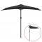Parasol de balcon avec mât en aluminium Noir 270x144x222cm DemiCet élégant parasol de balcon est parfait pour créer de l'ombre et vous protéger des rayons UV nocifs. Fabriquée en polyester anti-UV et anti-décoloration, la couverture de parasol vous offre une protection optimale contre le soleil et est facile à nettoyer. Avec un diamètre de mât de 38 mm, il pourrait être monté sur le support ou au milieu de tables avec trou. Sa forme demi-ronde ajoute également au charme unique du parasol. Le mât en aluminium résistant, ainsi que les 5 nervures en acier robustes, rendent le parasol très stable et durable. Le parasol de jardin peut être facilement ouvert et fermé grâce au mécanisme à manivelle. Veuillez noter que le socle de parasol n'est pas inclus dans la livraison. Nous vous recommandons de traiter le tissu du parasol avec un spray imperméabilisant s'il est soumis à des fortes précipitations. Ce produit ne convient pas aux intempéries telles que le vent fort, les chutes de neige et les conditions météorologiques extrêmes.