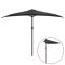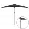 Parasol de balcon et mât en aluminium Anthracite 300x155cm DemiCet élégant parasol de balcon est parfait pour créer de l'ombre et vous protéger des rayons UV nocifs. Fabriquée en polyester anti-UV et anti-décoloration, la couverture de parasol vous offre une protection optimale contre le soleil et est facile à nettoyer. Avec un diamètre de mât de 38 mm, il pourrait être monté sur le support ou au milieu de tables avec trou. Sa forme demi-ronde ajoute également au charme unique du parasol. Le mât en aluminium résistant, ainsi que les 5 nervures en acier robustes, rendent le parasol très stable et durable. Le parasol de jardin peut être facilement ouvert et fermé grâce au mécanisme à manivelle. L'article est facile à assembler. Veuillez noter que le support de parasol n'est pas inclus dans la livraison. Nous recommandons de traiter le tissu du parasol avec un spray imperméabilisant s'il est soumis à des fortes précipitations. Le produit n'est pas adapté aux conditions météorologiques telles que le vent fort, les chutes de neige et les conditions météorologiques extrêmes.