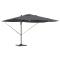 Parasol cantilever Roma avec LEDs en anthracite, 352x251x265 cm en aluminium.Ce grand parasol déporté est un super moyen d'obtenir de l'ombre à l'extérieur, idéal pour les patios, balcons, ou pour les barbecues d'été. Avec son look contemporain, il ajoute du style tout en te gardant au frais sous le soleil. Ce parasol a des fonctions ajustables, te permettant de changer la hauteur et l'inclinaison pour obtenir l'ombre parfaite selon la position du soleil. Sa construction robuste signifie que tu peux profiter sans soucis lors des rassemblements d'été, en faisant un super accessoire extérieur. Fait en polyester résistant aux UV et à l'eau, il te protège des rayons du soleil tout en séchant vite après la pluie, gardant ainsi ton espace extérieur accueillant. Le design chic du parasol fait de lui un ajout génial à n'importe quel espace extérieur, que ce soit pour un usage personnel ou commercial comme des cafés, bonifiant l'expérience en plein air. Avec sa grande taille rectangulaire, ce parasol couvre beaucoup de place, idéal pour tes barbecues ou pour un après-midi tranquille. Sa taille et sa forme allient style et fonctionnalité. La finition mate du parasol s'harmonise avec son style moderne, apportant un look attractif à n'importe quel endroit tout en étant résistant aux conditions météorologiques changeantes. Gardez les enfants éloignés de la zone d'assemblage pendant l'assemblage. Assurez-vous que ce produit est entièrement assemblé comme illustré avant utilisation. Assurez-vous que le produit est toujours placé sur un sol plat. Aucune responsabilité ne sera acceptée pour les dommages ou blessures causés par une utilisation incorrecte de ce produit. Éloignez vos mains du mécanisme de pliage et des pièces mobiles afin d'éviter toute blessure. N'utilisez et n'ouvrez jamais ce parasol sans avoir installé une base appropriée. N'utilisez pas ce parasol par vent fort ou en cas de pluie. Le non-respect de cette consigne peut entraîner des blessures et/ou des dommages. Fermez toujours le parasol et mettez la housse si le vent dépasse une « brise modérée », s'il neige ou s'il pleut. Le produit contient de petites pièces qui peuvent présenter un risque pour les jeunes enfants. Gardez les petites pièces hors de portée des enfants. Ce produit n'est pas un jouet ! Veillez à ce que les enfants n'utilisent pas le parasol, la toile ou la base pour jouer ou grimper. N'utilisez pas de feu ouvert (par exemple, barbecue ou grill) sous ou à proximité immédiate de ce produit. Fixez le produit à l'aide de cordes et de poids. Si la vitesse du vent dépasse 6 m/sec ou en cas de forte pluie, retirez soigneusement le produit, pliez-le, fixez-le et rangez-le dans un endroit sûr. Préparation à l'utilisation. Avant utilisation, veuillez vérifier que votre gazebo, tente, parasol ou pavillon n'est pas endommagé (éléments métalliques tordus, tissu déchiré). En cas de dommages, n'utilisez pas le produit. Le non-respect de ces consignes peut entraîner des dommages. Garantie : seuls les produits utilisés conformément aux instructions du fabricant sont couverts par la garantie et peuvent faire l'objet d'une réclamation.
