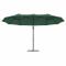 Parasol cantilever de jardin Vert 372 x 198 x 253 cmCe parasol déporté de jardin moderne est un ajout stylé et fonctionnel à tout jardin, balcon ou terrasse, offrant une ombre généreuse lors des journées ensoleillées d'été. Avec son design élégant et robuste, ce parasol améliore les espaces extérieurs, offrant un mélange d'ombre et de style sans nécessiter de mât central, optimisant ainsi la zone qu'il peut couvrir. La construction en acier, combinée à la toile en polyester durable, offre une protection de longue durée tout en maintenant une esthétique chic et une texture lisse. Matériaux Durables Le cadre du parasol est construit en acier revêtu de poudre, offrant stabilité et résistance aux intempéries. Cette finition garantit que le cadre résiste aux conditions extérieures sans corrosion ni décoloration, tandis que la toile en polyester offre une excellente résistance aux UV et à l'eau, vous protégeant du soleil et de la pluie. Réglage Intelligent Équipé d'une manivelle intuitive, ce parasol s'ouvre et se ferme sans effort. Le mécanisme d'inclinaison permet d'ajuster précisément la toile, garantissant une couverture optimale tout au long de la journée. Cette flexibilité le rend idéal pour divers angles et intensités solaires, améliorant le confort extérieur. Mécanisme de Verrouillage Une fonctionnalité de sécurité intégrée comprend un mécanisme de verrouillage robuste qui maintient le parasol en place lorsqu'il est ouvert. Cela empêche les effondrements accidentels, assurant la sécurité et offrant une tranquillité d'esprit par temps venteux ou lorsqu'il est laissé sans surveillance. Large Application Conçu pour un usage extérieur, ce parasol élégant améliore tout espace extérieur, y compris balcons, jardins et terrasses. Son style moderne complète divers types de décor, vous permettant de profiter des saisons ensoleillées avec confort et style. Entretien Simple Maintenez la qualité et l'apparence du parasol en traitant la toile avec un spray imperméabilisant pour une protection accrue. Nettoyez régulièrement avec un chiffon humide tout en évitant les produits chimiques agressifs. Une housse de protection est recommandée pour prolonger sa durée de vie durant les intempéries.
