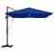 Parasol déporté Roma avec LED, bleu azur, 352x251x265 cm en aluminium.Ce grand parasol déporté est parfait pour l'ombrage extérieur, idéal pour les patios, balcons ou jardins. Avec son design moderne, il ajoute de l'élégance tout en vous protégeant du soleil. Ce parasol a des caractéristiques réglables pour la hauteur, un mécanisme d'inclinaison et rotation à 360 degrés, pour que vous puissiez avoir l'ombre parfaite selon le soleil. Fabriqué avec des matériaux résistants aux UV et imperméables, il vous protège du soleil tout en étant durable quelles que soient les conditions. Son design moderne s'intègre bien à tout espace extérieur, que ce soit chez vous ou dans des cafés. Avec son grand diamètre, il offre assez d'ombre pour 4-6 personnes, parfait pour les réunions de famille ou les après-midis détendus. La finition mate du parasol complète à merveille son look moderne, embellissant votre extérieur. Gardez les enfants éloignés de la zone d'assemblage pendant l'assemblage. Assurez-vous que ce produit est entièrement assemblé comme illustré avant utilisation. Assurez-vous que le produit est toujours placé sur un sol plat. Aucune responsabilité ne sera acceptée pour les dommages ou blessures causés par une utilisation incorrecte de ce produit. Éloignez vos mains du mécanisme de pliage et des pièces mobiles afin d'éviter toute blessure. N'utilisez et n'ouvrez jamais ce parasol sans avoir installé une base appropriée. N'utilisez pas ce parasol par vent fort ou en cas de pluie. Le non-respect de cette consigne peut entraîner des blessures et/ou des dommages. Fermez toujours le parasol et mettez la housse si le vent dépasse une « brise modérée », s'il neige ou s'il pleut. Le produit contient de petites pièces qui peuvent présenter un risque pour les jeunes enfants. Gardez les petites pièces hors de portée des enfants. Ce produit n'est pas un jouet ! Veillez à ce que les enfants n'utilisent pas le parasol, la toile ou la base pour jouer ou grimper. N'utilisez pas de feu ouvert (par exemple, barbecue ou grill) sous ou à proximité immédiate de ce produit. Fixez le produit à l'aide de cordes et de poids. Si la vitesse du vent dépasse 6 m/sec ou en cas de forte pluie, retirez soigneusement le produit, pliez-le, fixez-le et rangez-le dans un endroit sûr. Préparation à l'utilisation. Avant utilisation, veuillez vérifier que votre gazebo, tente, parasol ou pavillon n'est pas endommagé (éléments métalliques tordus, tissu déchiré). En cas de dommages, n'utilisez pas le produit. Le non-respect de ces consignes peut entraîner des dommages. Garantie : seuls les produits utilisés conformément aux instructions du fabricant sont couverts par la garantie et peuvent faire l'objet d'une réclamation.
