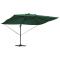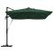 Parasol déporté Roma avec LEDs Vert 352x251x265 cm en aluminiumCe parasol déporté Roma mixe style et pratique, vous offrant une ombre de choix où que vous soyez dehors, que ce soit sur les terrasses, balcons ou dans les jardins. Son design classe, avec de l'éclairage LED sur les bras, illumine vraiment la nuit, ce qui le rend parfait pour passer du temps ensemble ou juste se détendre. Caractéristiques Réglables : Ce parasol tourne à 360 degrés et peut s'incliner, vous offrant une ombre flexible. Ça vous garde à l'aise et vous protège du soleil toute la journée. Construction Robuste : Fait en aluminium et en acier de qualité avec un fini en poudre, ce parasol résiste à diverses conditions météo, ce qui le rend durable pour les rassemblements extérieurs. Illumination LED : Les LEDs solaires ajoutent une belle lumière la nuit, vous permettant de profiter de l'extérieur même après la tombée de la nuit. Protection contre le Vent : Vient avec des cordes anti-vent et une base croisée solide, garantissant sa stabilité et réduisant le risque de basculement quand il y a du vent. Fonctionnement Facile : La manivelle rend l'ouverture et la fermeture super simples, permettant des ajustements rapides quand nécessaire. Avoir confort et style à la fois. Ce produit ne doit pas être éliminé avec les autres déchets ménagers dans l'Union européenne.