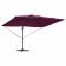 Parasol déporté Roma avec LEDs rouge bordeaux, 352 x 251 x 265 cm en aluminiumCe parasol déporté Roma allie style et fonctionnalité, offrant de l'ombre géniale pour les espaces extérieurs comme les patios, balcons et jardins. Son design cool, avec des lumières LED solaires sur chaque tige, booste vraiment l'ambiance extérieure pour des réunions ou moments de détente. Fonctions réglables : Le parasol tourne à 360 degrés et a une fonction d'inclinaison pour un ombrage flexible, parfait pour maximiser votre confort et protection solaire toute la journée. Construction solide : Fait d'aluminium et d'acier de qualité avec un revêtement en poudre, ce parasol est conçu pour résister à tous les temps, garantissant sa longévité lors de vos moments à l'extérieur. Illumination LED : Les lumières LED solaires apportent une belle ambiance le soir, vous permettant de profiter de votre extérieur même après la tombée de la nuit. Stabilité anti-vent : Avec des cordes de protection contre le vent et un socle lourd, il reste stable, ce qui réduit le risque de renversement les jours de tempête. Facilité d'utilisation : La manivelle rend l'ouverture et la fermeture simples, permettant des ajustements rapides quand vous en avez besoin, tout en assurant un look sans tracas. Ce produit ne doit pas être éliminé avec les autres déchets ménagers dans l'Union européenne.