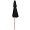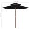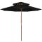 Parasol à deux étages avec mât en bois noir 270 cmCet élégant parasol de jardin en bois est parfait pour créer de l'ombre et vous protéger des rayons UV nocifs. Fabriquée en polyester anti-UV et anti-décoloration, la couverture de parasol vous offre une protection optimale contre le soleil et est facile à nettoyer. Avec un diamètre de mât de 38 mm, il pourrait être monté sur le support existant ou au milieu de tables percées. Le mât en bois fort, associé aux 8 nervures durables, rend le parasol d'extérieur très stable et durable. La construction à double auvent permet la circulation de l'air par un jour chaud. Le parasol de jardin peut être facilement ouvert et fermé grâce au système à une poulie. Veuillez noter que nous vous recommandons de traiter le tissu du parasol avec un spray imperméabilisant s'il est soumis à des fortes précipitations.