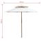 Parasol à deux étages avec poteau en bois blanc crèmeCe parasol élégant en bois, qui peut être monté sur votre support existant ou dans le trou central d'une table, est le choix idéal pour créer un peu d'ombre et vous protéger contre les rayons UV nocifs du soleil tout en lisant ou en buvant du café avec votre famille ou les amis sur votre patio ou dans le jardin. Le parasol peut être facilement ouvert et fermé. Cette couverture de parasol est faite de polyester résistant aux UV et à la décoloration. Le solide poteau en bois dur de couleur teck, ainsi que les 8 nervures robustes, ajoute à sa stabilité, rendant le parasol très résistant pour des années d'utilisation. La construction à deux étages permet la circulation de l'air par temps chaud.
