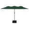 Parasol à double tête vert 449x265 cmCet élégant parasol à deux têtes est un choix parfait pour créer de l'ombre et vous protéger des rayons UV nocifs. Matériau durable : fabriqué en polyester anti-UV et anti-décoloration, le parasol de jardin vous offre une protection optimale contre le soleil et est facile à nettoyer. Cadre robuste : le solide mât en fer enduit de poudre, ainsi que les nervures durables, rendent le parasol de jardin très stable et robuste. Mécanisme à manivelle : grâce au mécanisme de la manivelle, le parasol s'ouvre et se ferme facilement. Base solide : la base avec le sac à sable assure la solidité et la stabilité du parasol, même en cas de vent fort ou de forte pluie.