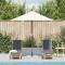 Parasol d'extérieur avec mât en bois 150x200 cm SableCet élégant parasol est parfait pour créer de l'ombre et vous protéger des rayons UV nocifs. Fabriquée en polyester anti-UV et anti-décoloration, la couverture de parasol vous offre une protection optimale contre le soleil et est facile à nettoyer. Avec un diamètre de mât de 38 mm, il pourrait être monté sur le support existant ou au milieu de tables percées. Le mât en bois fort, associé aux 6 nervures durables, rend le parasol très stable et durable. Le parasol de jardin peut être facilement ouvert et fermé grâce au système à une poulie. L'article est facile à assembler. Veuillez noter que nous vous recommandons de traiter le tissu du parasol avec un spray imperméabilisant s'il est soumis à des fortes précipitations.