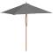 Parasol d'extérieur avec mât en bois 150x200 cm anthraciteCet élégant parasol est parfait pour créer de l'ombre et vous protéger des rayons UV nocifs. Fabriquée en polyester anti-UV et anti-décoloration, la couverture de parasol vous offre une protection optimale contre le soleil et est facile à nettoyer. Avec un diamètre de mât de 38 mm, il pourrait être monté sur le support existant ou au milieu de tables percées. Le mât en bois fort, associé aux 6 nervures durables, rend le parasol très stable et durable. Le parasol de jardin peut être facilement ouvert et fermé grâce au système à une poulie. L'article est facile à assembler. Veuillez noter que nous vous recommandons de traiter le tissu du parasol avec un spray imperméabilisant s'il est soumis à des fortes précipitations.