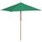 Parasol d'extérieur avec mât en bois 150x200 cm vertCet élégant parasol est parfait pour créer de l'ombre et vous protéger des rayons UV nocifs. Fabriquée en polyester anti-UV et anti-décoloration, la couverture de parasol vous offre une protection optimale contre le soleil et est facile à nettoyer. Avec un diamètre de mât de 38 mm, il pourrait être monté sur le support existant ou au milieu de tables percées. Le mât en bois fort, associé aux 6 nervures durables, rend le parasol très stable et durable. Le parasol de jardin peut être facilement ouvert et fermé grâce au système à une poulie. L'article est facile à assembler. Veuillez noter que nous vous recommandons de traiter le tissu du parasol avec un spray imperméabilisant s'il est soumis à des fortes précipitations.