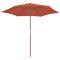 Le mât en bois fort, associé aux 6 nervures durables, rend le parasol très stable et durable.